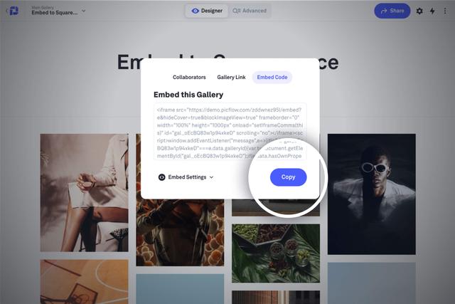 3. Copy the Embed Code from Picflow