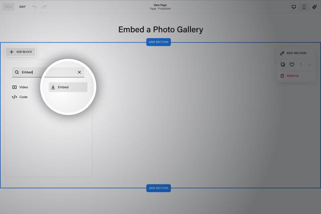 Open your Squarespace website and navigate to the page where you want to embed the gallery. Here are the steps to follow: